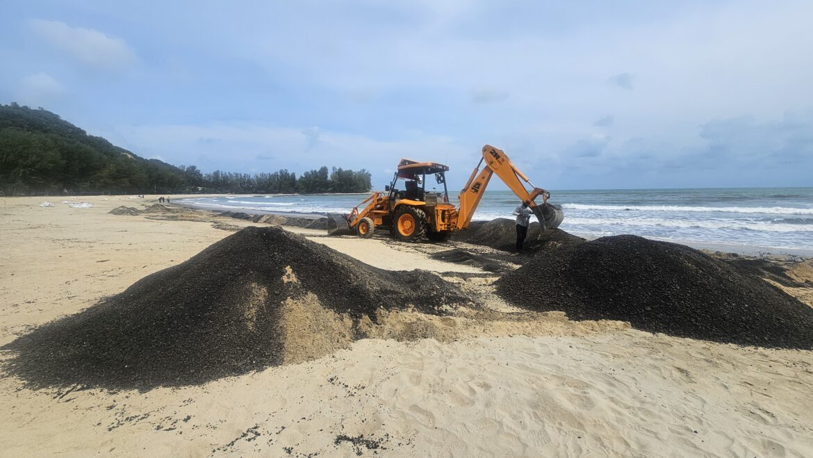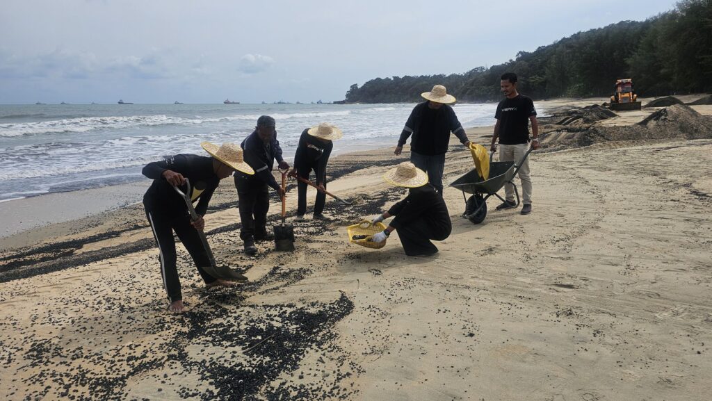 Arang batu di Pantai Teluk Kalong mula dibersihkan
