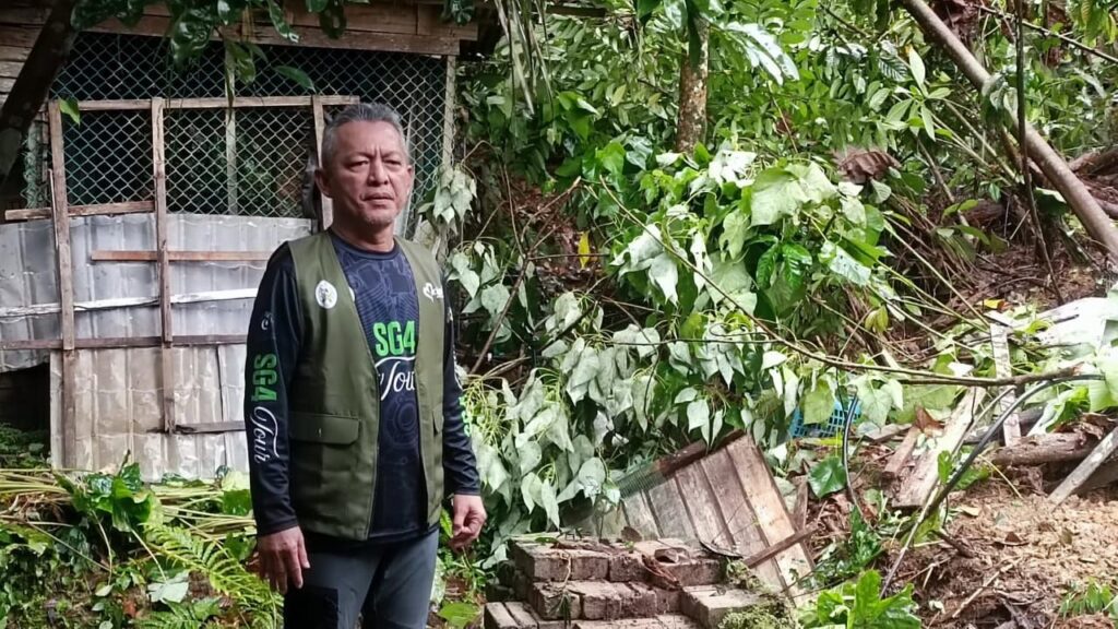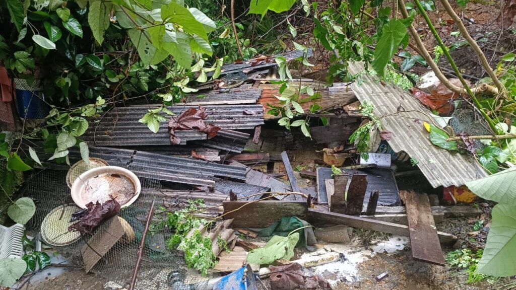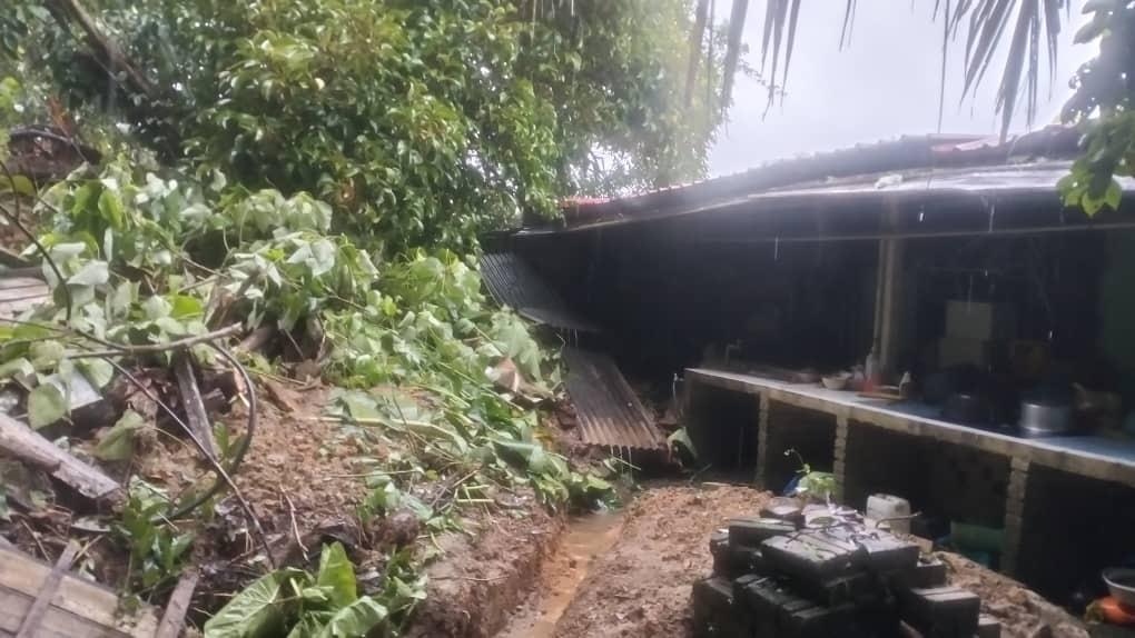 “Selepas keluar rumah, saya sekeluarga terkejut melihat keseluruhan bahagian dapur rumah mereka runtuh dihempap pokok dan tanah runtuh itu,” ujarnya.