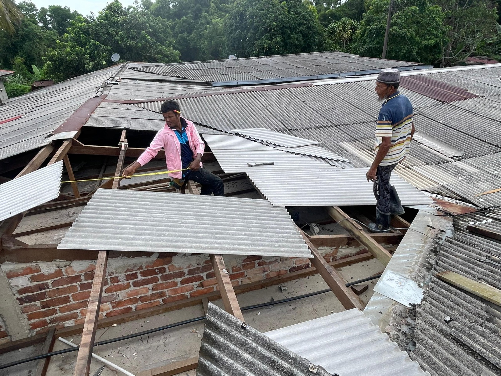 Bagaimanapun, katanya, pihak pejabat ADUN akan segera membantu mengganti bumbung yang rosak untuk keselesaan penghuni rumah.