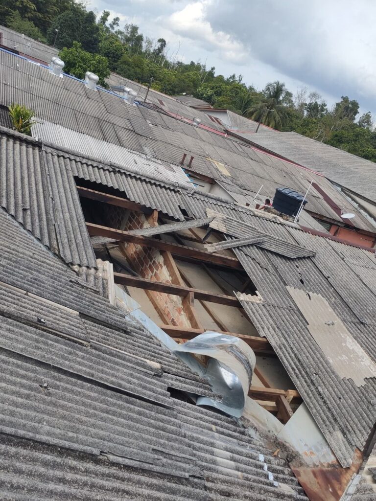 “Ketika kejadian saya berada di tempat kerja dan terus ke lokasi kejadian. Apabila saya sampai didapati banyak bumbung yang rosak dan pecah.