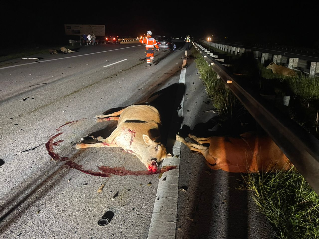 Bagaimanapun, kesemua tujuh ekor lembu yang dirempuh kereta wanita terbabit mati bergelimpangan di atas lebuhraya itu.