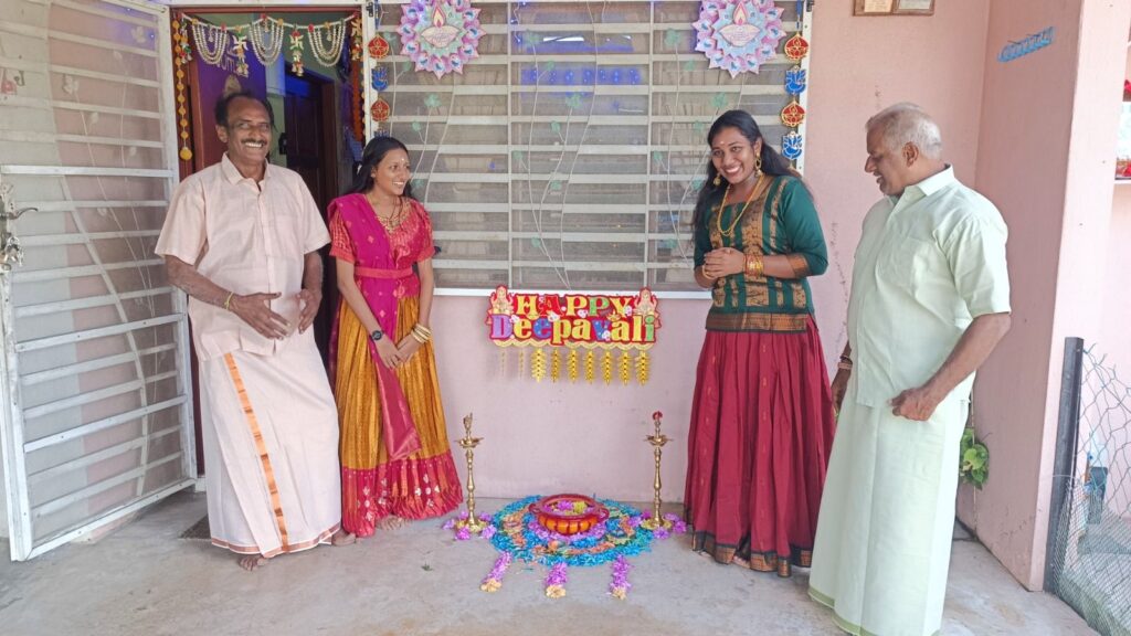 “Selamat Deepavali, hari ni kami menyambut perayaan Deepavali dan rumah kami ramai tetamu datang pelbagai kaum seperti Cina, Melayu dan kami sangat gembira,” ujarnya.