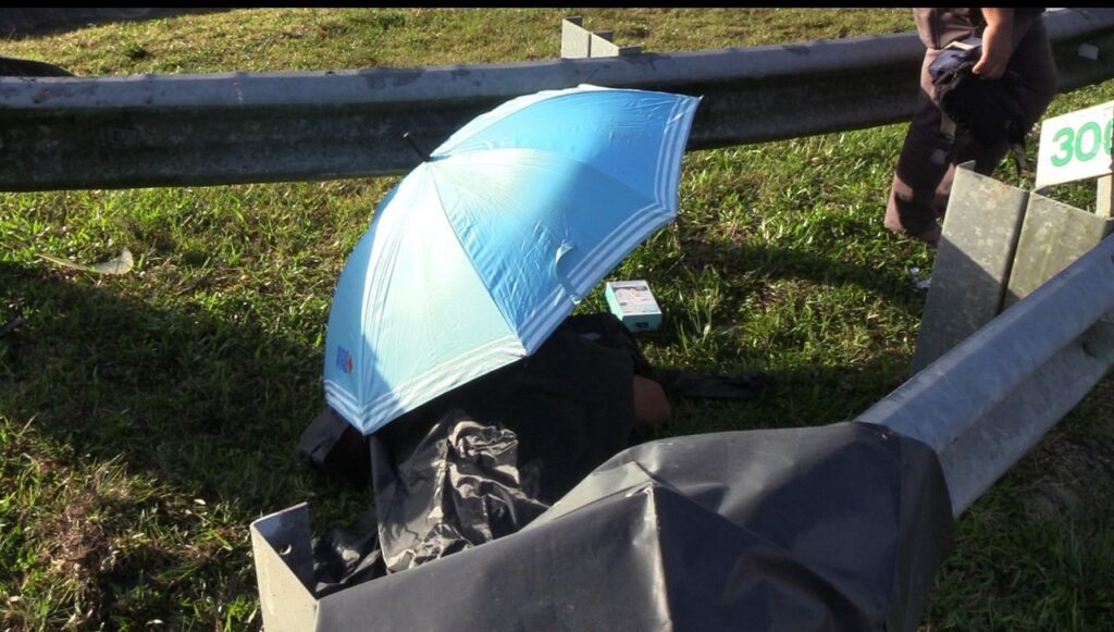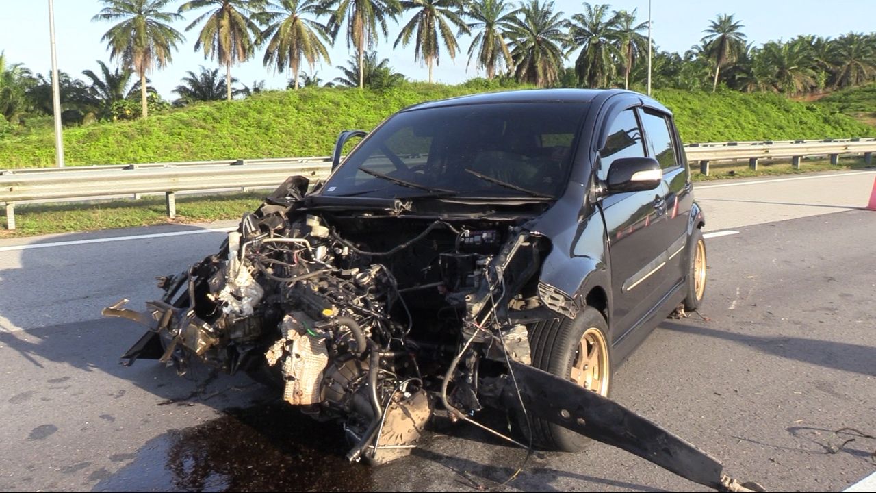 Akibat rempuhan itu, mangsa dikatakan tercampak keluar dari keretanya lalu badannya menghempap sebatang tiang lampu di tepi lebuhraya berkenaan.